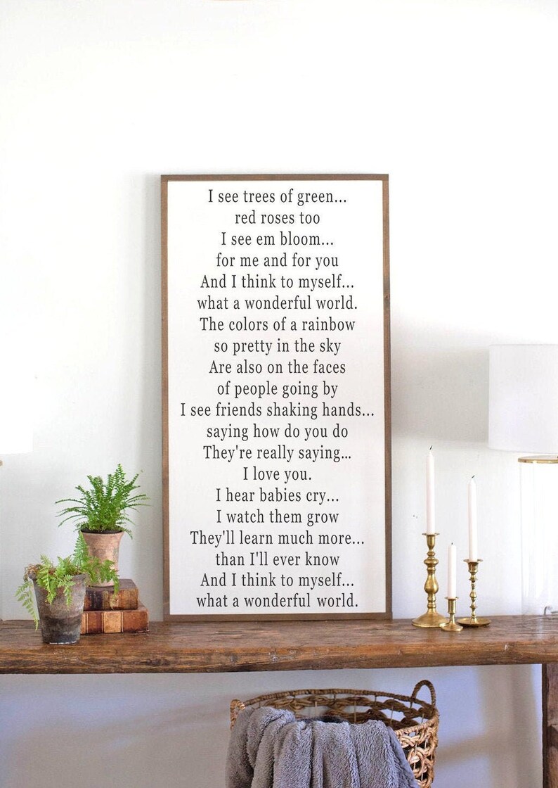 Wonderful World Song Lyrics Wood Sign I See Trees Of Etsy